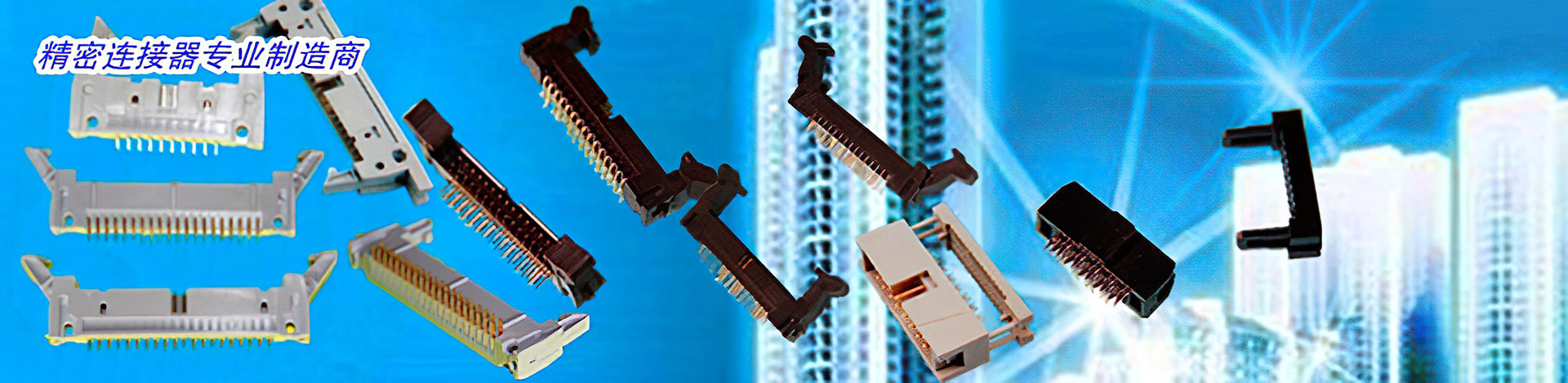 各種精密電子連接器、金手指插槽、耐高溫金手指插槽、美式匯流排CARD EDGE CONECTORS、805總線插座、高速板對板連接器、歐式DIN41612連接器、排針排母、牛角和簡易牛角及配套IDC壓線頭、hard metric連接器、手機連接器、PCI和MINI PCIE等電腦周邊連接器、SD,TF卡座連接器、圓孔IC座、D-SUB連接器、FFC軟排線及FFC插座、老化測試座、針座WAFER和塑殼HOUSING、工藝芯片,DUMMY IC、軍工線簧連接器及客戶定制連接器等。
